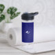 Midnight Blue Colour Minimalist Plain Monogram Water Bottle