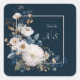 Midnight Blue Floral Elegance with White Blooms Square Sticker