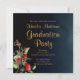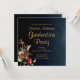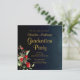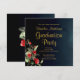 Midnight Blue Gold Red Floral Graduation Party Invitation