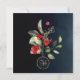 Delicate, sophisticated and full of elegance graduation party invitation with a simple yet beautiful floral detail at the bottom left corner featuring gorgeous red and gold flowers, complimented with exquisite green botanicals. Elegant gold customizable typography for the graduation party invitation details on a midnight blue gradient for background.