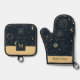 Midnight Blue Gold Star Constellation Pattern Oven Mitt & Pot Holder Set