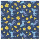A colorful pretty pattern with blue horses on a dark navy vintage blue, surrounded by yellow Stella D'oro lily flowers. Great for ladies who love horses.