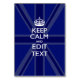 Your personalized Keep Calm saying on a bold midnight blue union jack decor. A personalized Keep Calm style saying on a one of a kind gift. Humourous or whimsical try on your creative words on two editable lines of text. Remember to use CAPITAL letters for best results.