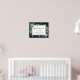 This wedding welcome sign features painted watercolor succulent, eucalyptus, and botanical green leaves with a rectangle frame on a midnight navy blue background. Matching items are also available.