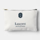Chic and elegant with minimalist aesthetic. This lovely simple accessory pouch features a contemporary set of fonts in a midnight blue color and wedding couple monogram against a light ivory background.
