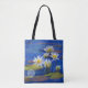 Midnight Blue, White Lily Flowers Tote Design Bag