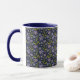 Add a little cheer to your day with a whimsical, hand-painted watercolor floral patterned mug, featuring playful purple-lavender daisy blooms dancing on a navy blue background.