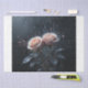 A pair of delicate pink roses bloom gracefully against a deep, moody background, exuding sophistication and timeless beauty. Perfect for adding a touch of refined charm to any project.