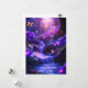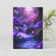 A tranquil purple landscape where waterfalls meet blooming flowers and fluttering butterflies.