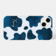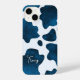 Midnight Meadow: Navy Blue Cow Print iPhone Case