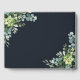 This wedding guest book features painted watercolor succulent, eucalyptus, and botanical green leaves with a rectangle frame on a midnight navy blue background. Matching items are also available.