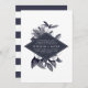 Moody and intriguing with a modern, minimal look, our Midnight Orchid wedding invitations features a simple yet striking colour palette of deepest midnight blue and crisp white. Your wedding details are displayed in modern white lettering on an elongated diamond shaped element set atop a detailed vintage floral illustration. Minimal text and ample white space give this invitation a unique and unforgettable look. Cards reverse to wide horizontal stripes in midnight blue and white.