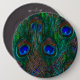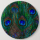 Midnight Peacock Feathers Etching Style Decor 6 Inch Round Button