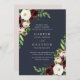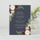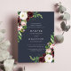 Our Midnight Blush Romance wedding invitation surrounds your wedding day details with clusters of watercolor flower blossoms in ivory, blush pink and burgundy marsala with lush green botanical foliage on a rich navy blue background. This elegant design accommodates longer names or middle names. Visit our Blush Romance collection for several alternate styles and matching pieces.