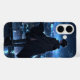 High-quality anime phone case featuring a mysterious boy on a rooftop at night. Glowing city lights and a full moon create a dramatic and dynamic scene perfect for anime fans.