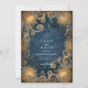 This striking celestial wedding design radiates luxury and mystique with a deep midnight blue background and intricate golden sun motifs. The swirling baroque details and glowing accents create a feeling of cosmic grandeur — perfect for celestial, gothic, or art nouveau-inspired weddings seeking a bold yet timeless look.