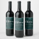 Midnight Teal Romance | Satiny Grunge Damask Favou Wine Label