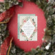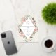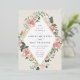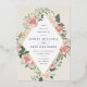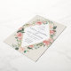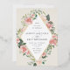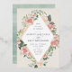 A beautiful watercolor floral wedding invitation in soft pastel ivory, sage green, and blush pink with a rose gold foil geometric border.