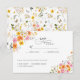 Celebrate your upcoming wedding with these beautifully designed RSVP cards, perfect for setting a tone of timeless elegance. Featuring a delicate watercolor arrangement of vibrant midsummer blooms in warm, romantic autumn tones, these cards create a soft and inviting atmosphere for your guests. The floral accents dance across the top and bottom of the card, with colours like deep pinks, golds, and soft greens.