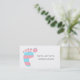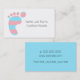 This business card design features a blue and pink striped graphic of a baby's foot set against a white background. The text on the back of the card is set against a baby blue background. All of the text can be easily changed by you.