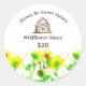 Un étiquette à thème miel pour annoncer votre entreprise décoré d'une brochette d'abeilles et de tournesols couleur jaune vif illustrés d'aquarelle sur un arrière - plan blanc. Vous pouvez modifier le texte pour afficher vos détails.