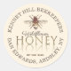 Étiquette miel ivoire avec abeille à miel stylisée. Le mot "miel" est imprimé dans une police ciselée en or bronzé, et est répété dans le texte réfléchi en dessous. Personnalisez avec votre nom d'abeille et votre nom d'apiculteur et emplacement, et ajoutez votre cépage de miel, ou d'autres descriptifs comme "artisanal, cru, local" etc. Choisissez votre poids net miel en onces et en grammes dans une liste précalculée dans notre champ de formulaire. Bonne apiculture !