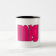 Pink MIG logo on a bright white mug with black interior. This is part of our winning t-shirt design, now in mug form!