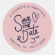 Élégant enregistrer la date tampon en caoutchouc avec manuscrit script décoratif "enregistrer la date" et un coeur mignon au milieu. Toutes les informations sont encerclées dans une police de script élégante prête pour une personnalisation facile.