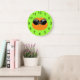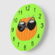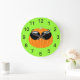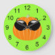 Un Citrouille Cool avec lunettes de soleil sur un arrière - plan vert citron orne cette horloge. Ça aurait l'air fantastique sur le mur d'un enfant. Sélectionnez parmi plusieurs formes et tailles. L'arrière - plan d'horloge est personnalisable.