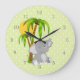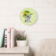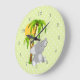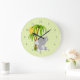 Une adorable horloge murale avec un petit éléphant mignon et un arrière - plan pois vert pour une fille ou une pépinière. Ça fait un grand cadeau ! Objets correspondants disponibles dans notre magasin. Quelques graphismes : par Prettygrafikdesign, graphiexpress