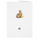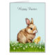 Mignonne lapin de Pâques avec poussette et fleurs Carte de Joyeux Vacances. Le texte peut être personnalisé pour Pâques ou Anniversaire. Les lapins symbolisent la longévité, l'abondance et la bonne fortune.