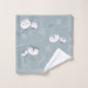 Cette serviette de bain est munie d'un joli motif d'illustrations faciales de hibou gris et blanc représentant une chouette maman (avec cils) et son fils (avec cravate arc). Ils sont entourés de dessins de lignes de bois de feuilles et de branches sur un arrière - plan bleu-gris clair. Idéal pour une crèche ou une salle de bain pour garçon.