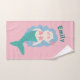Ce set de serviettes de bain, spécialement conçu pour les bébés, présente de mignonnes petites sirènes et étoiles de mer aux couleurs pastel, sur arrière - plan rose. Ce joli design est parfait comme cadeau pour une petite fille. Serviette à main vous pouvez personnaliser le texte avec le nom de votre bébé.