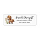 Étiquettes de adresse avec une adorable illustration. Un petit poney marron se régalant de marguerites.