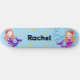 Deux mignonnes petites filles de sirène dans l'eau avec des étoiles de mer et des bulles crée une scène sous-marine ludique sur le skateboard. Idéal pour les enfants qui aiment le skateboard ou qui peuvent servir de mur pour la chambre d’un enfant. Ajoutez un nom ou un texte de votre choix en lettres noires pour personnaliser.