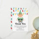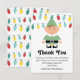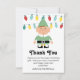Cartes de remerciement de Noël personnalisées pour enfants avec un lutin de Noël mignon, des guirlandes lumineuses colorées et un message personnel de gratitude pour remercier ceux qui ont envoyé des cadeaux pendant la période des fêtes.