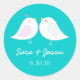 Mignons inséparables mariage autocollant sur un arrière - plan aqua. Customisez le libellé qui correspond à vos besoins. Vous pouvez modifier la couleur de l'Arrière - plan en choisissant le bouton customiser et modifier. Voir www.zazzle.com/daisylin712 pour les invitations de mariage assorties, RSVP, cartes de remerciement et plus encore.