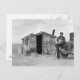 Repro of photo showing migratory Mexican field worker's home on the edge of a frozen pea field, Imperial Valley, California. 1937 photo by Dorothea Lange for the Farm Security Administration. Original medium at LOC: nitrate negative.