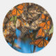 Migrating monarch butterflies cling to leaves classic round sticker