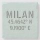 Milan Italy latitude and longitude map coordinates in modern urban font