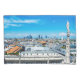 Painting of Milan skyline with modern skyscrapers in Porto Nuovo financial district and stone statues of Duomo Cathedral