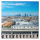 Painting of Milan skyline with modern skyscrapers in Porto Nuovo financial district and stone statues of Duomo Cathedral...