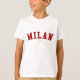 Check out this Milan t-shirt! Are you from Milan, Italy? Do you have a friend or family member who loves Milan, Italy? If so, this "Banner" t-shirt is exactly the gift that you're looking for! The design features "Milan" in arched red lettering in the classic College font.