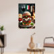 Discover a Milanese treasure with this delectable Italian Truffle Burger. A juicy beef patty infused with fragrant black truffle oil is layered with creamy fresh mozzarella, sweet sun-dried tomatoes, and vibrant basil pesto, all stacked high on a crusty ciabatta roll. A small Italian flag adds a touch of Italian style, while aged parmesan and a glass of crisp white wine provide a fitting backdrop, making this a true Italian culinary experience.