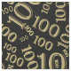 This design is your age, 100, in a black and gold graphic number pattern with milestone number 100 scattered in varied sizes and angles in an all-over print.