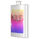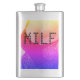 The product is a good size and came exactly as it was pictured. The lid is not attached to the flask, which could be dangerous on drunken nights... The print came out surprisingly well and looks very sharp. Would definitely recommend.