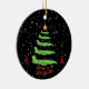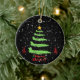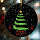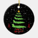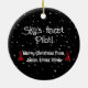 Design features a minimalist illustration of a Christmas tree made from green military WW2 airplanes. The tree is topped with a bright yellow star and the trunk spells out 'Merry Christmas' in red, fun font. On the sides of the tree sits 2 red small plaid coloured Christmas trees. Snow falls throughout entire surface of the ornament. The back has a heartfelt message of "Sky's finest pilot" and "Merry Christmas from, names" - all of which is customizable.