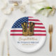 Add the finishing touch to your military retirement party with these USA American Flag design military paper plates and party supplies. USA American flag in modern red white and blue, stars and stripes, with gold combat boots design. This American Flag party paper plates is perfect for a military retirement party, military deployments send off, military welcome home celebration, military graduation, and soldiers going away party. Perfect for all military, army, border protection, border patrol, conservation officer, park ranger, game warden, federal law enforcement. Personalize this american flag patriotic banner with your soldiers name and congratulations, welcome home, good luck or happy retirement. See our collection for matching military retirement invitations, military graduation gifts, party favours, and supplies. COPYRIGHT © 2021 Judy Burrows, Black Dog Art - All Rights Reserved. Military Army Retirement USA American Flag Party Paper Plates