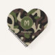Modern Military Camouflage Green Brown Monogram Pattern Fun Heart Shape Note Book has a military look great for those who have served our country or just like the camouflage look. Personalize with your initial and name.