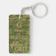 Carry your keys with this Fueled by Glitter & Grit double sided keychain. Designed with a bold faux glitter camouflage pattern in military shades of green and brown, accented with tan and beige, this keychain blends fierce energy with a touch of style.